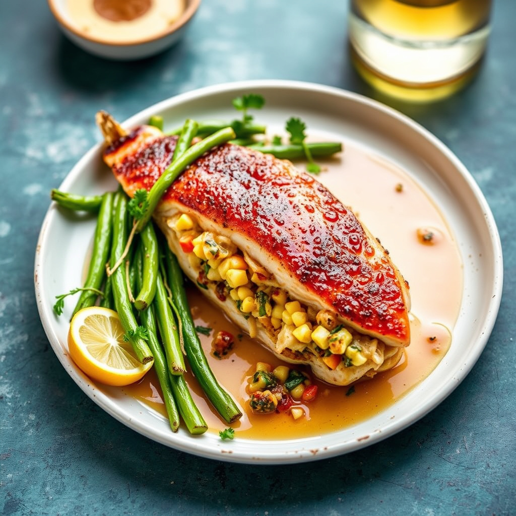 oppskrift på caribbean stuffed red snapper med krydret fyll og eksotiske smaker. perfekt til en spennende middag eller fest.