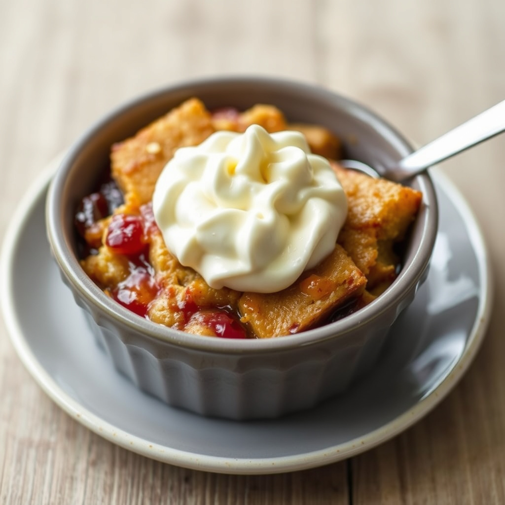 oppskrift på varm peanøttsmør og jelly brød pudding - en søt og kremet dessert perfekt for helgen eller hverdagen, enkel å lage og full av smaker.
