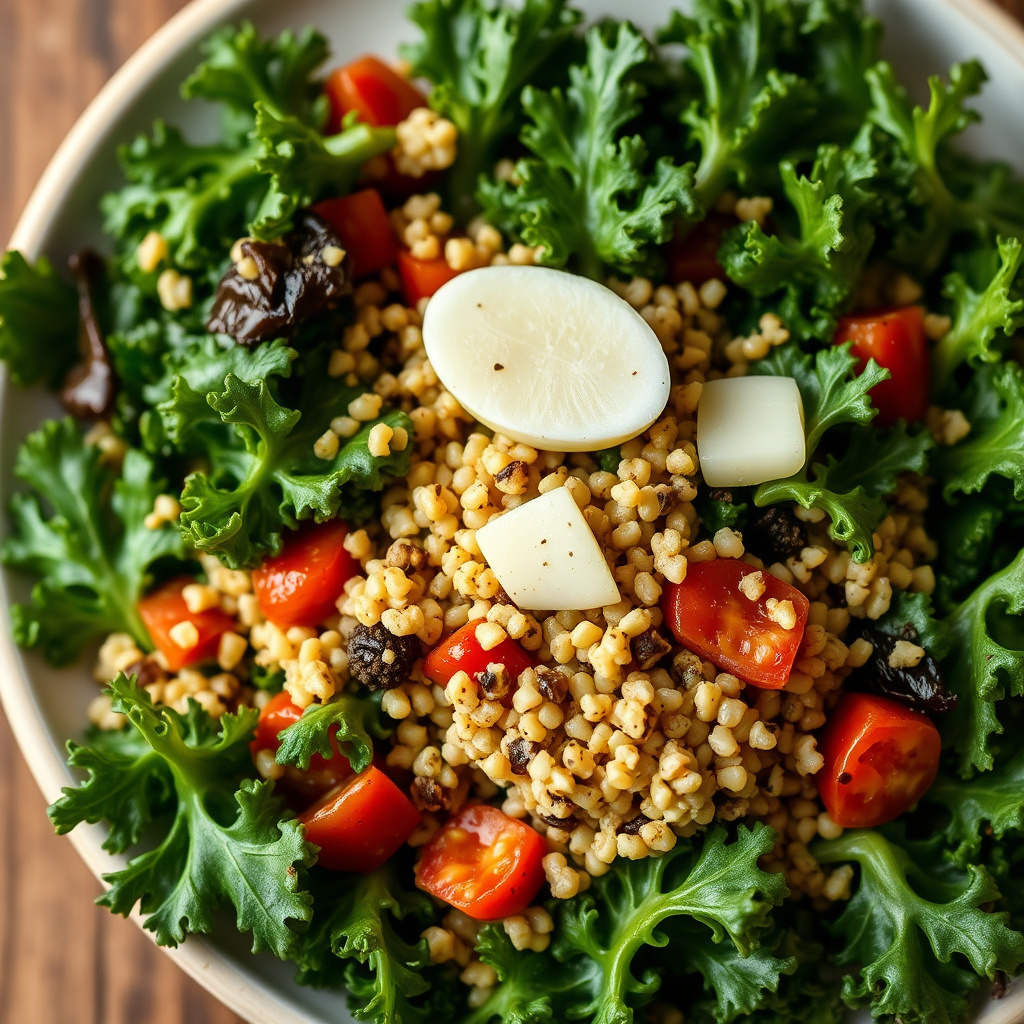 oppskrift på en frisk og næringsrik kale og quinoa salat, perfekt for en lett lunsj eller sunn middag. enkel å lage og full av smak.