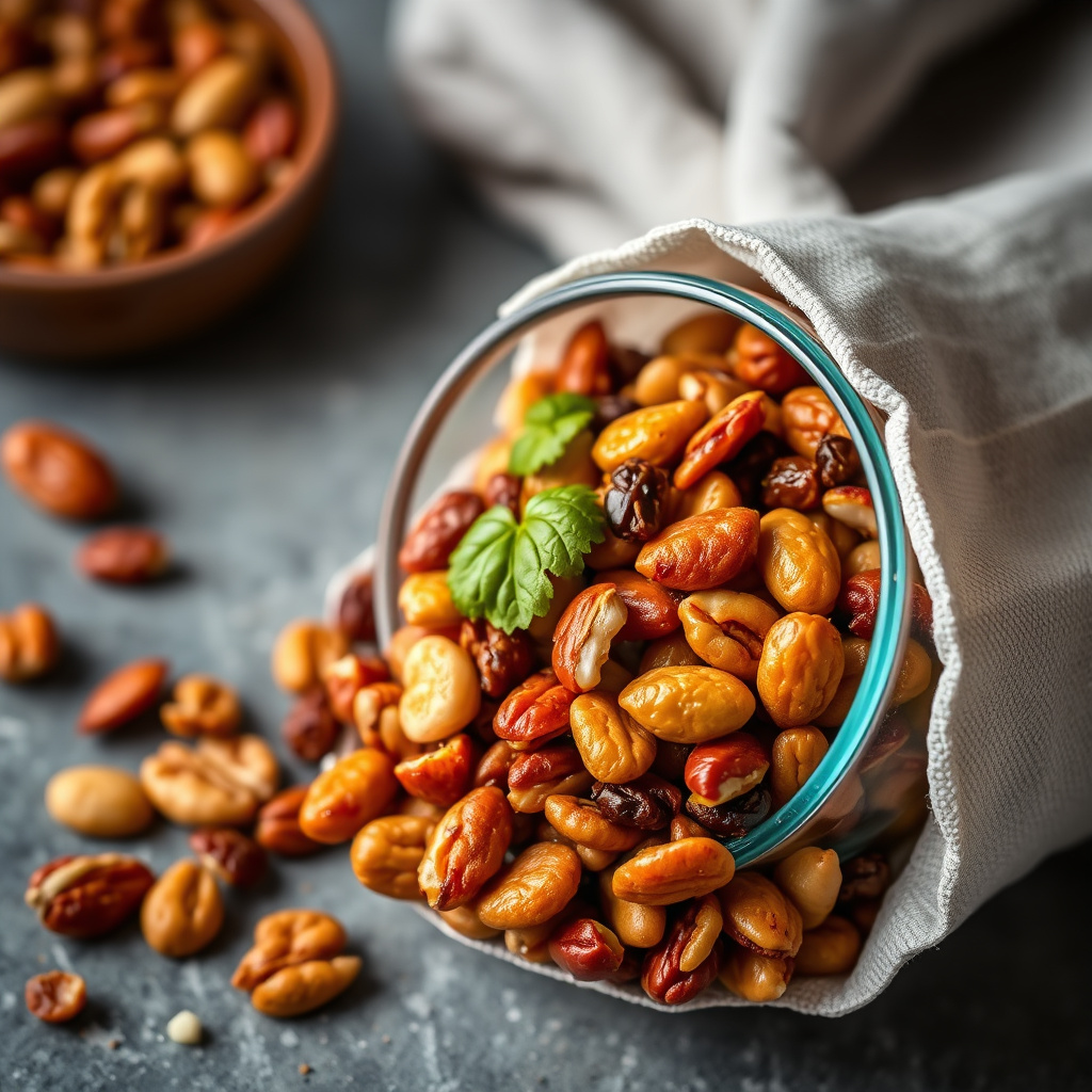 oppskrift på en krydret nøtte- og rosinsmørblanding perfekt som snacks eller tilbehør. enkel å lage, smakfull og sunn.