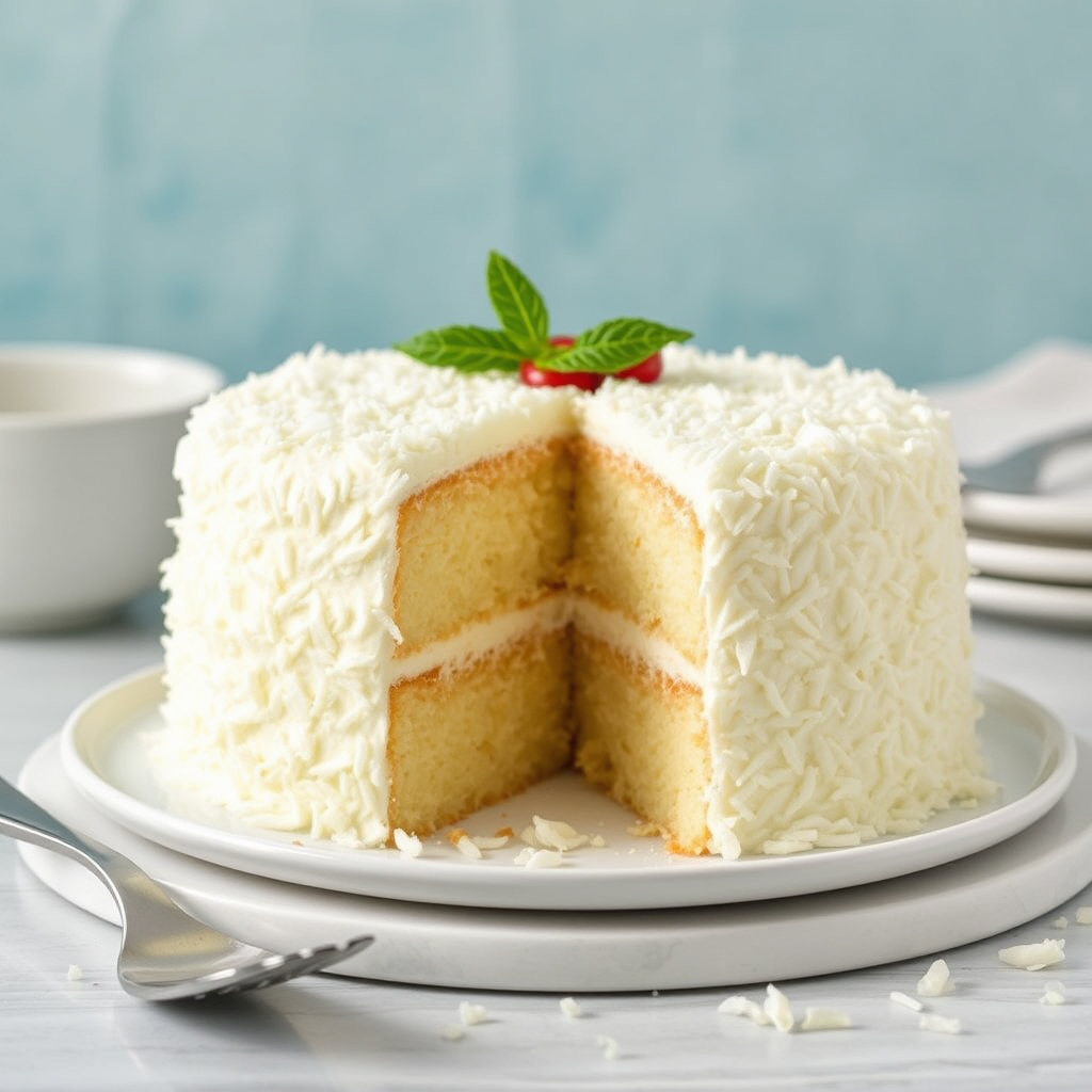 oppskrift på hvit kokos kake, perfekt for enhver anledning. enkel å lage med ingredienser som kokos, melis og vanilje. prøv den i dag!