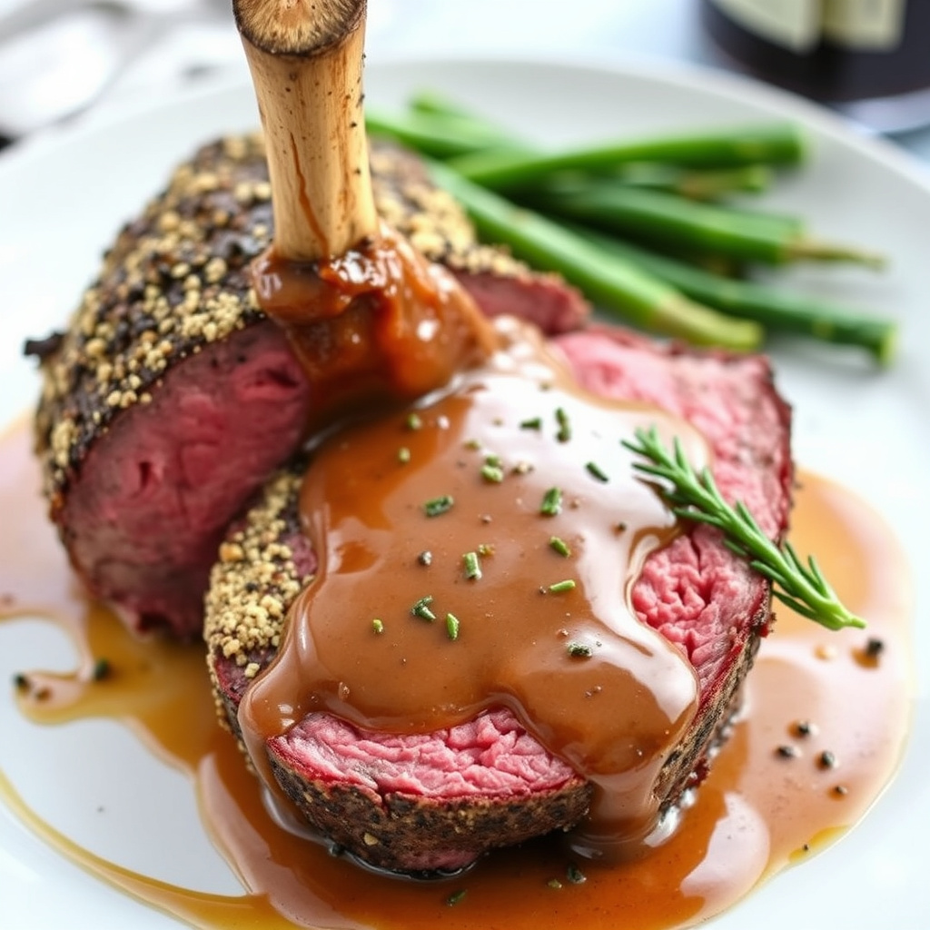 Lær å lage en saftig prime rib med en krydret horseradish- og peppercornsauce. Perfekt for spesielle anledninger og helgefeiring.