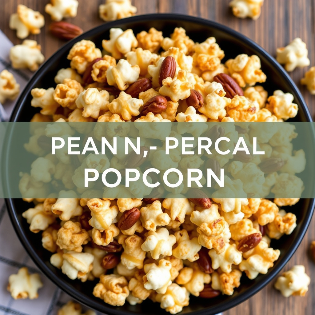 oppskrift på peanut-pecan karamell popcorn – en perfekt kombinasjon av søtt, salt og nøtter. enkel å lage og ideell som snacks eller dessert.