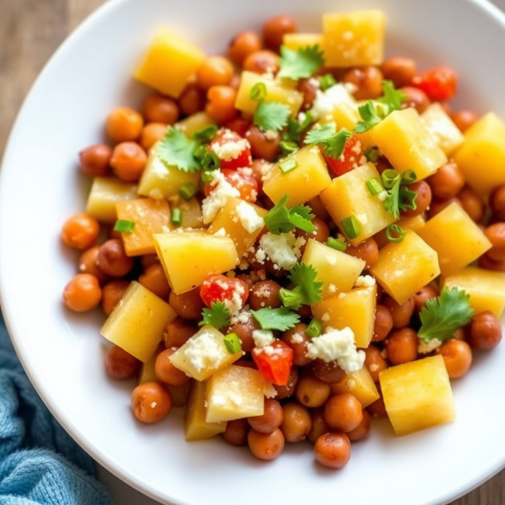 oppskrift på en smakfull topping med garbanzo, ananas, panela (eller piloncillo) og kanel, perfekt for å tilføre sødme og krydder til dine retter