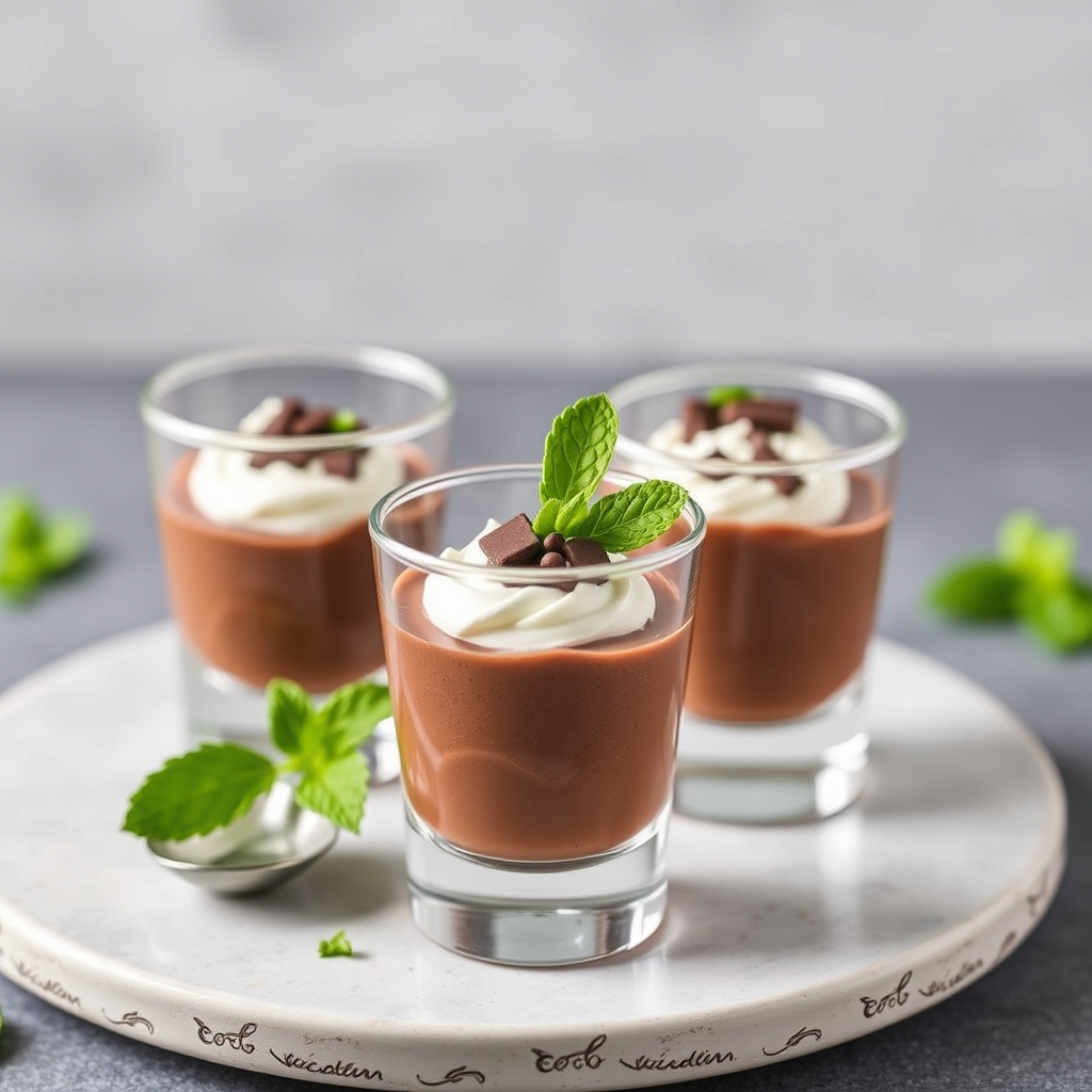 oppskrift på mint sjokolademousse i shot glass - en søt og frisk dessert perfekt for spesielle anledninger eller som små søtsaker.
