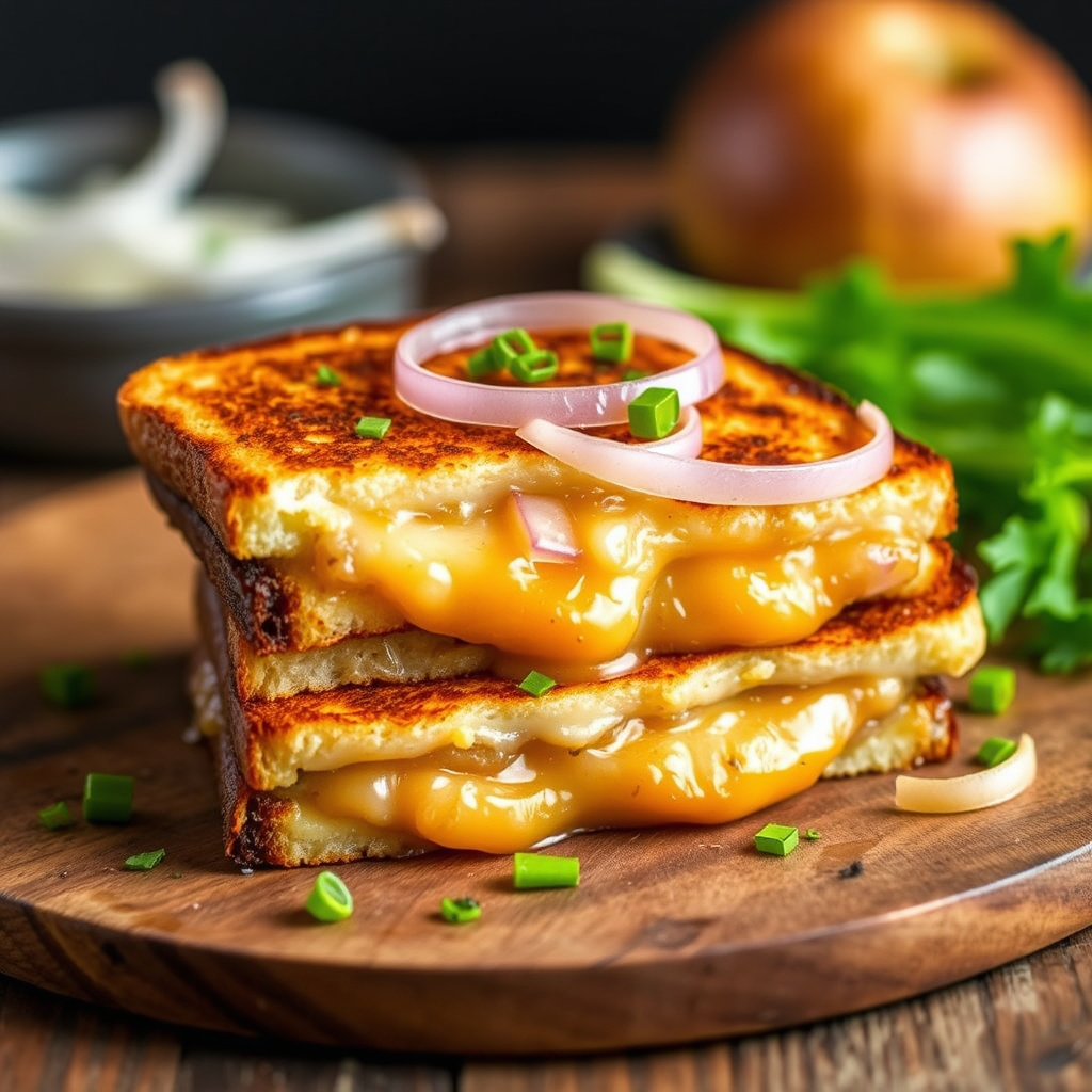 oppskrift på french onion grilled cheese – en deilig kombinasjon av karamellisert løk og smeltet ost. perfekt for en rask lunsj eller middag.