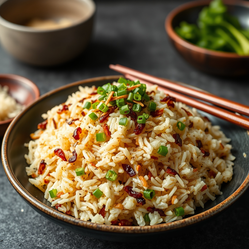 Lær hvordan du lager en deilig crispy shallot rice, perfekt som tilbehør eller forrett. Enkel oppskrift med sprøstekte sjalottløk og aromatiske smaker.