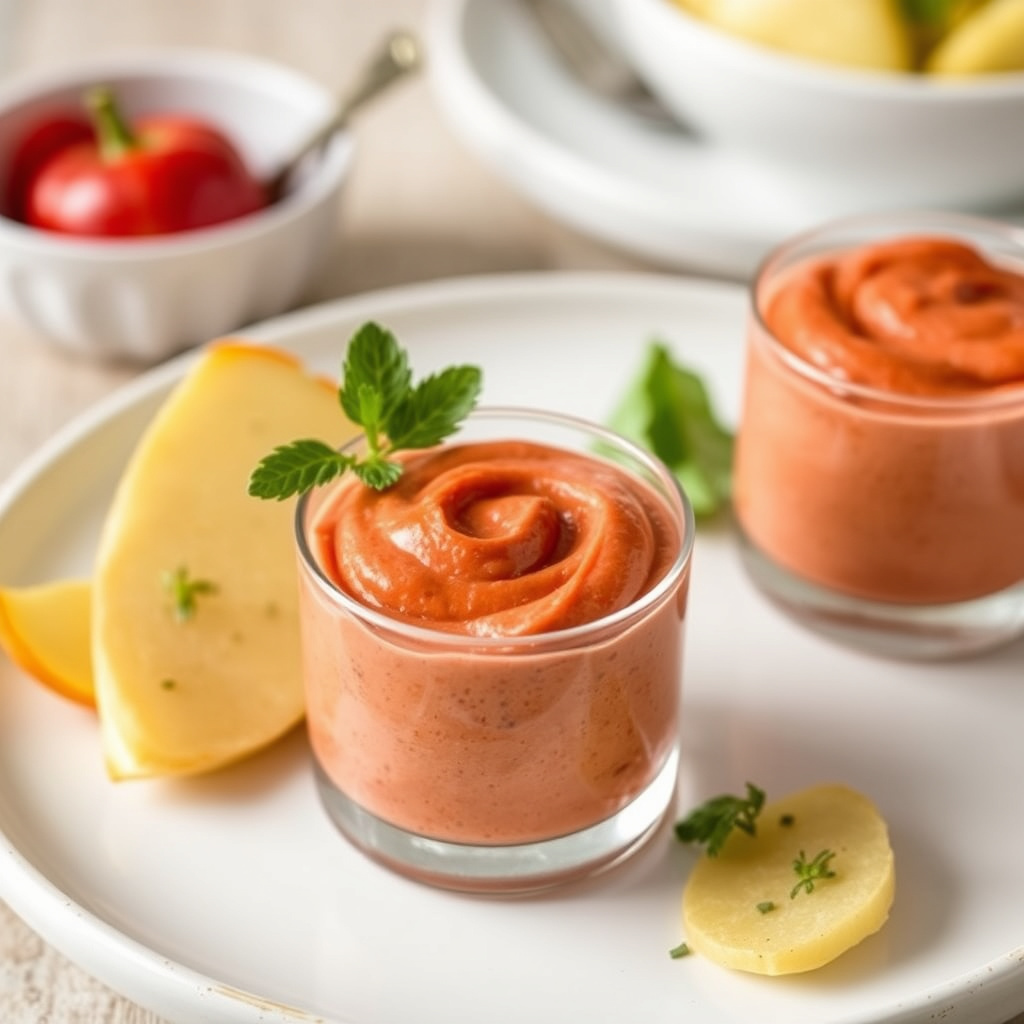 Oppdag en smakfull og enkel oppskrift på rød pepper mousse servert i endive. Perfekt for forrett eller tapas, klar på kort tid.