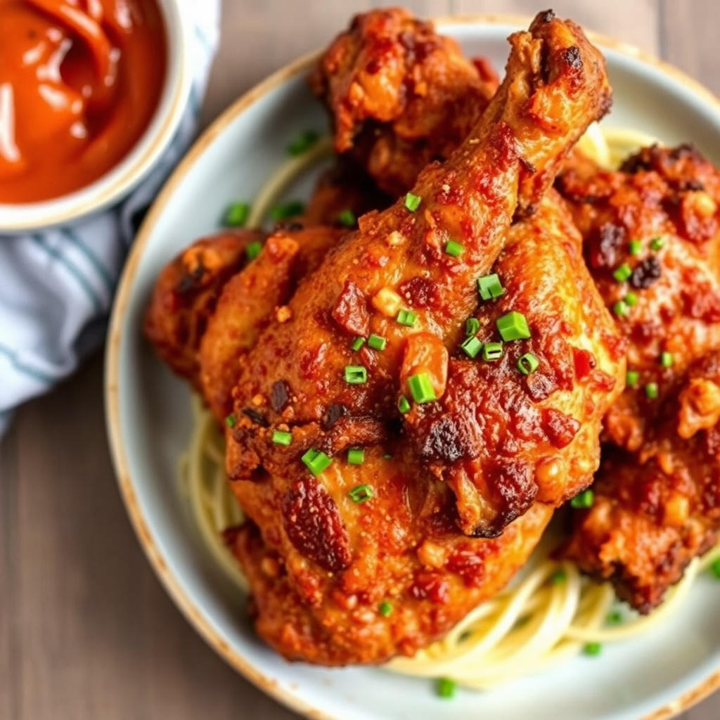 oppskrift på slow roasted fried chicken - en saftig og smakfull rett. perfekt for helgen eller spesielle anledninger.