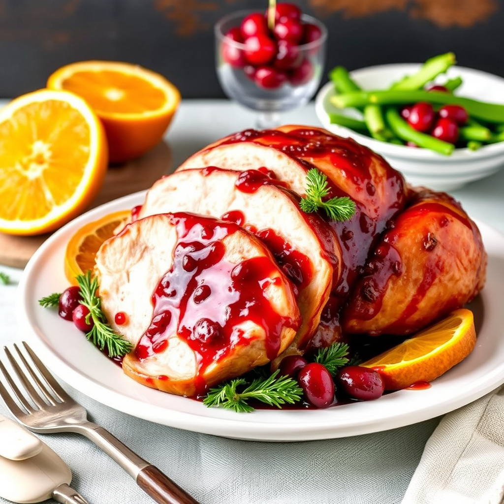 Lær hvordan du lager en saftig kalkun med en frisk og smakfull tranebær- og appelsinglasering. Perfekt til jul eller høytidelige anledninger.