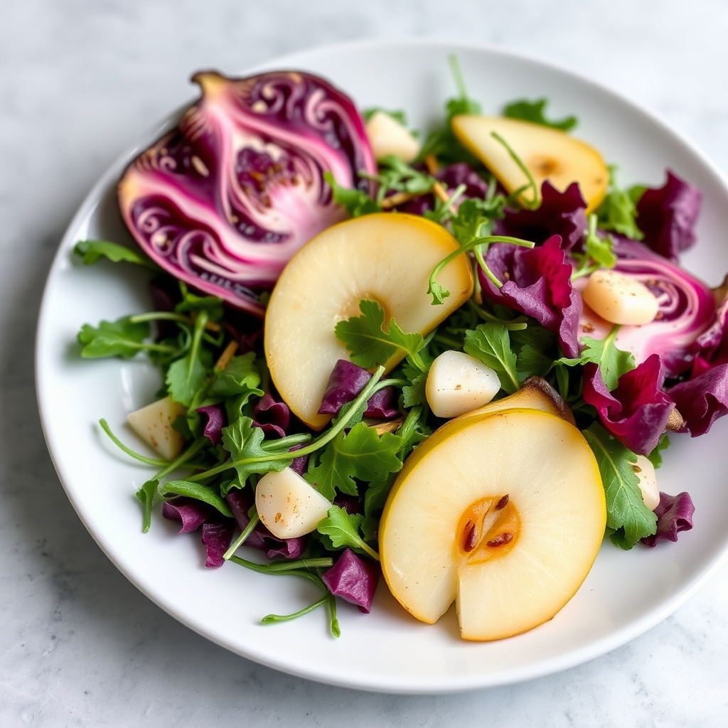 radicchio, pære og arugula salat - frisk og smakfull oppskrift