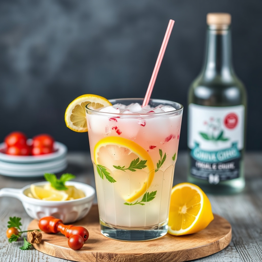 - 2I en stor mugg, rør sammen konsentratet av limonade, ingefærvannet, ginger ale og vodka. Server over is med en skive sitron.