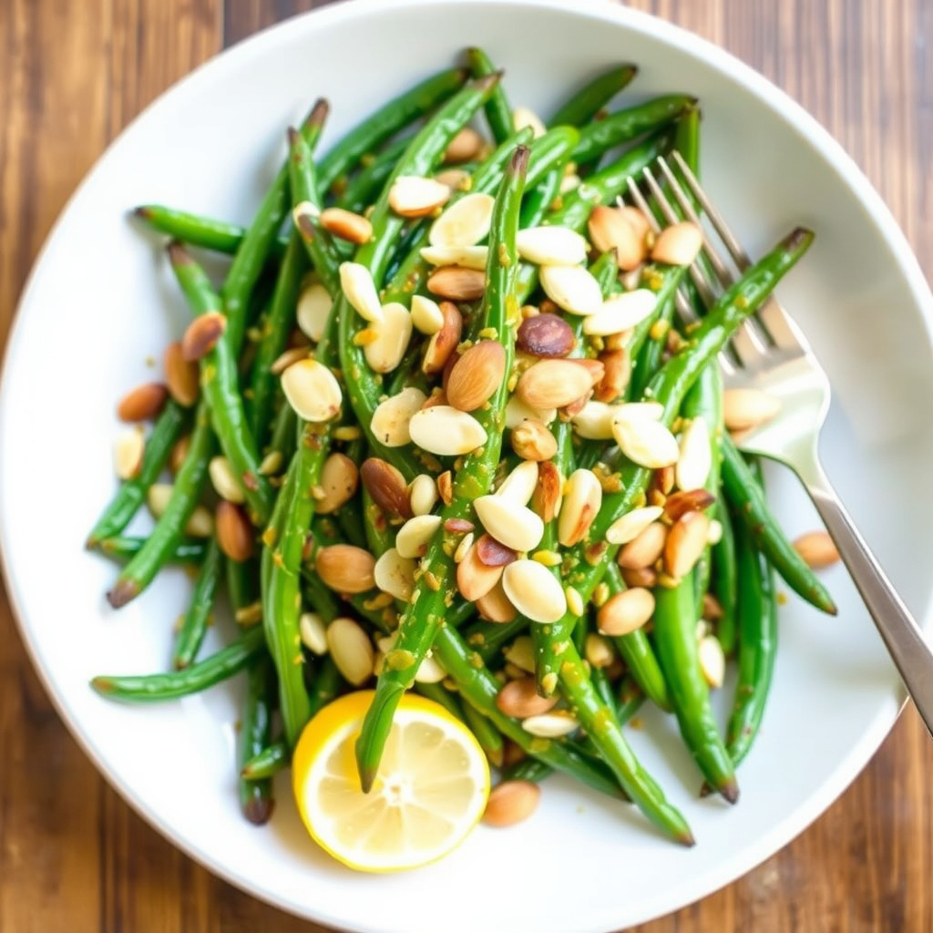 Lær hvordan du lager en smakfull grønne bønner almondine med frisk sitrusvinaigrette. En enkel og sunn rett perfekt som forrett eller tilbehør.