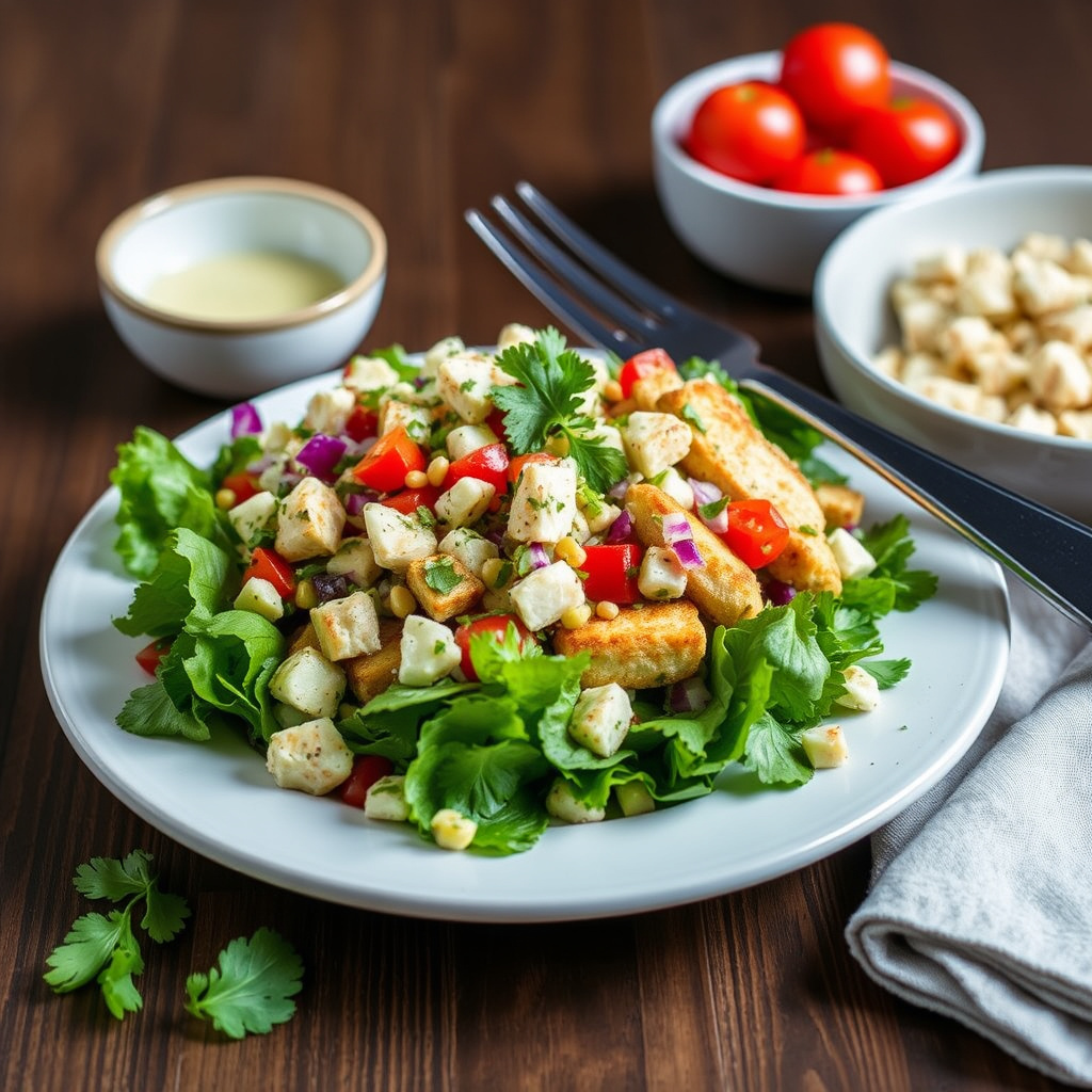 2I samme beholder i matprosessoren, hakk persille og mynte til de er finhakket. Tilsett dette i jicamaen sammen med tomater, agurk, løk, 2 spiseskjeer av oljen, sitronsaften, 2 teskjeer salt og 3/4 teskje pepper.