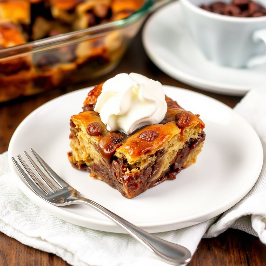 oppskrift på deilig sjokoladekrakket challah brød pudding, perfekt som dessert eller søtt måltid. enkel å lage og smaker fantastisk.
