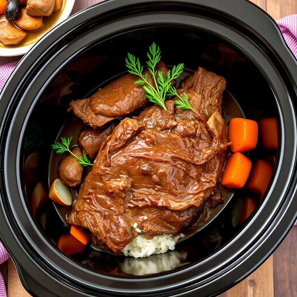 Lær hvordan du lager en saftig og smakfull slow cooker pot roast. Perfekt for en komfortmatopplevelse med minimal innsats. Enkel oppskrift for hele familien!