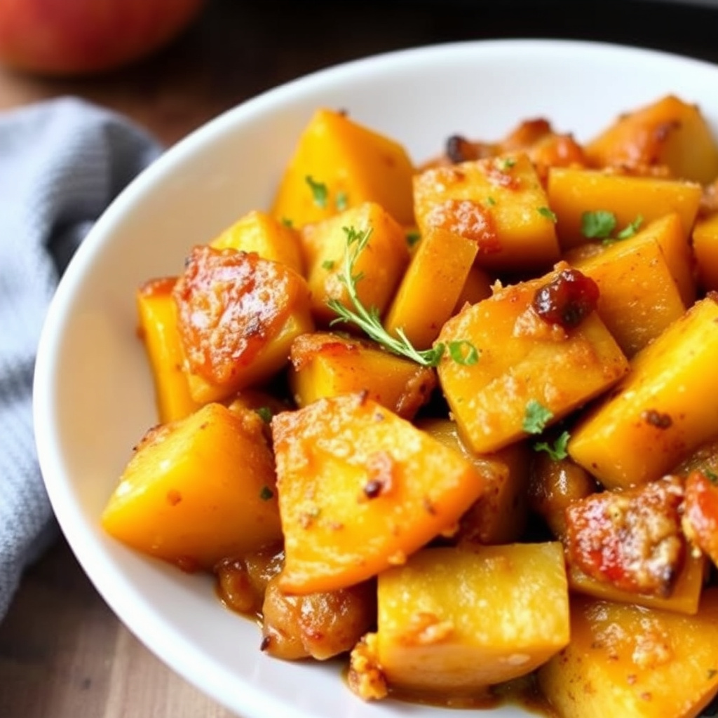 oppskrift på en smakfull og enkel sakskurv med squash og eple, laget i langsomkoker. perfekt for en sunn og mettende middag eller forrett.