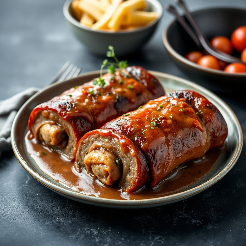 oppskrift på german beef rouladen – en tradisjonell tysk rett med mørt kjøtt fylt med spekk og sylteagurk. perfekt for helgen eller spesielle anledninger.
