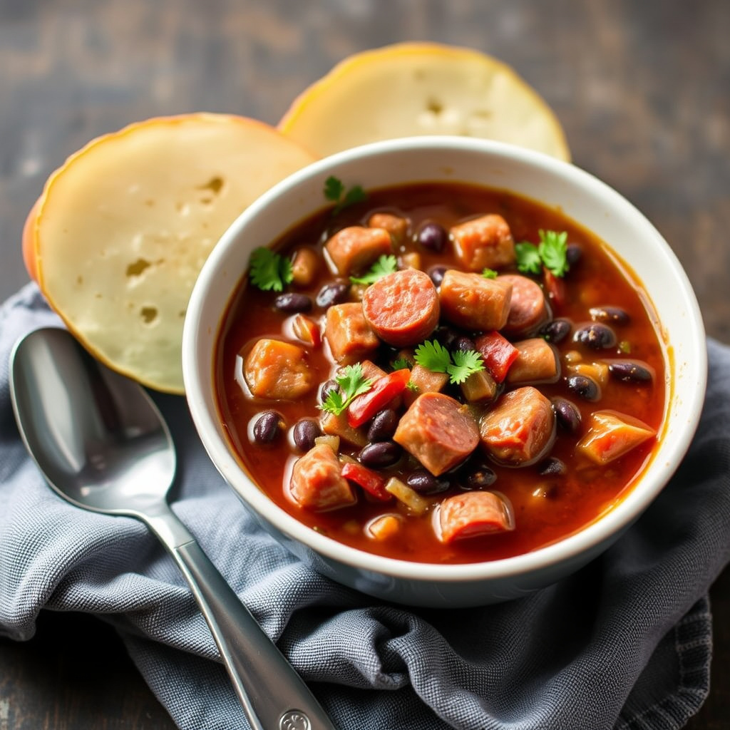 Fjæsende pølse- og svartbønnesuppe