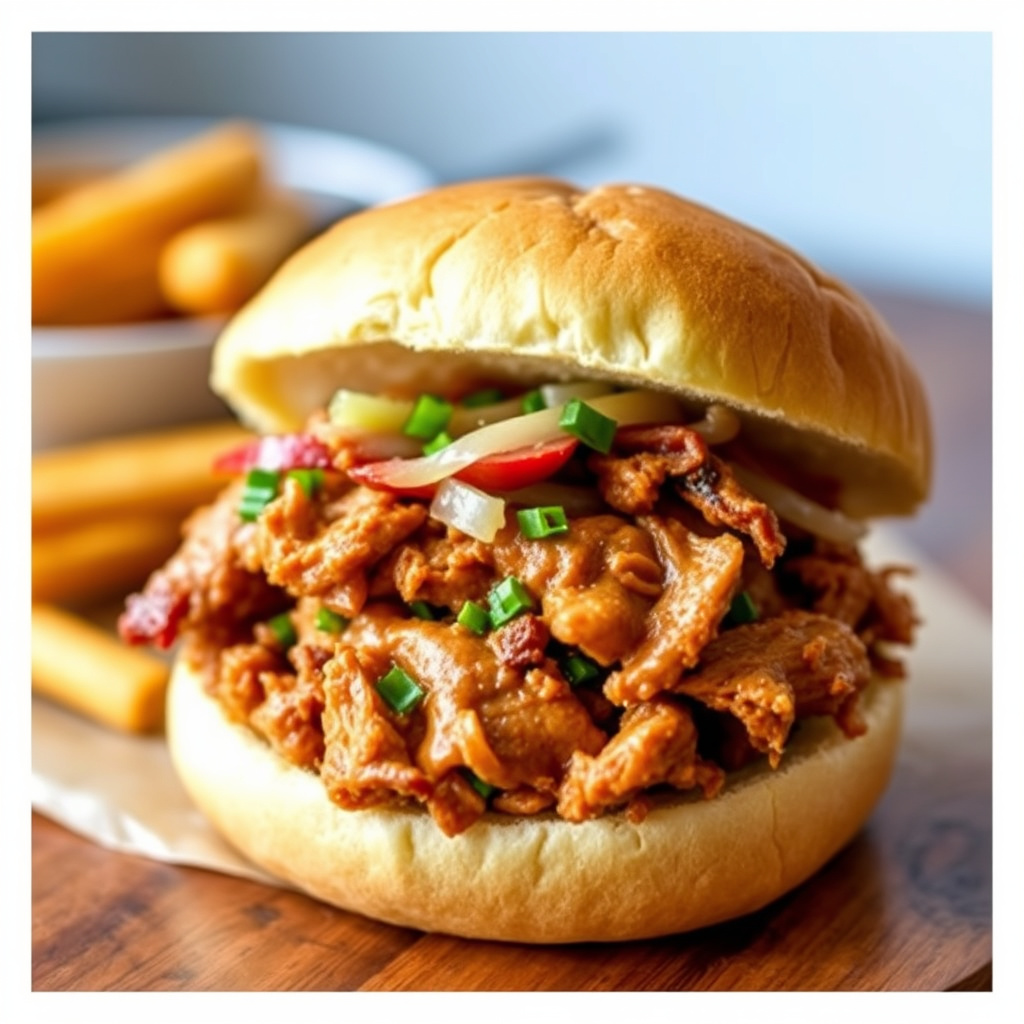 1Forvarm ovnen til 150 grader Celsius (300 grader Fahrenheit). I en stor bolle blander du sammen svinekjøttet og sausen. Overfør blandingen til en 20 x 20 cm (8 x 8 tommer) ildfast form. Dekk tett med aluminiumsfolie og stek til det er veldig varmt, ca. 1 time. Fordel blandingen på hamburgerbrødene og server umiddelbart.