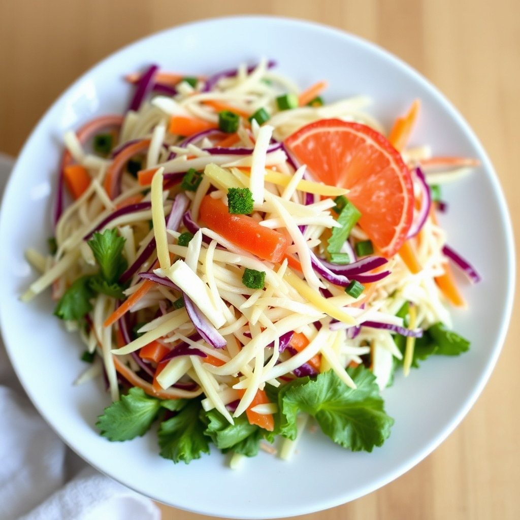 oppskrift på citrus slaw, en frisk og syrlig salat perfekt for sommeren. enkel å lage med få ingredienser. prøv den i dag!