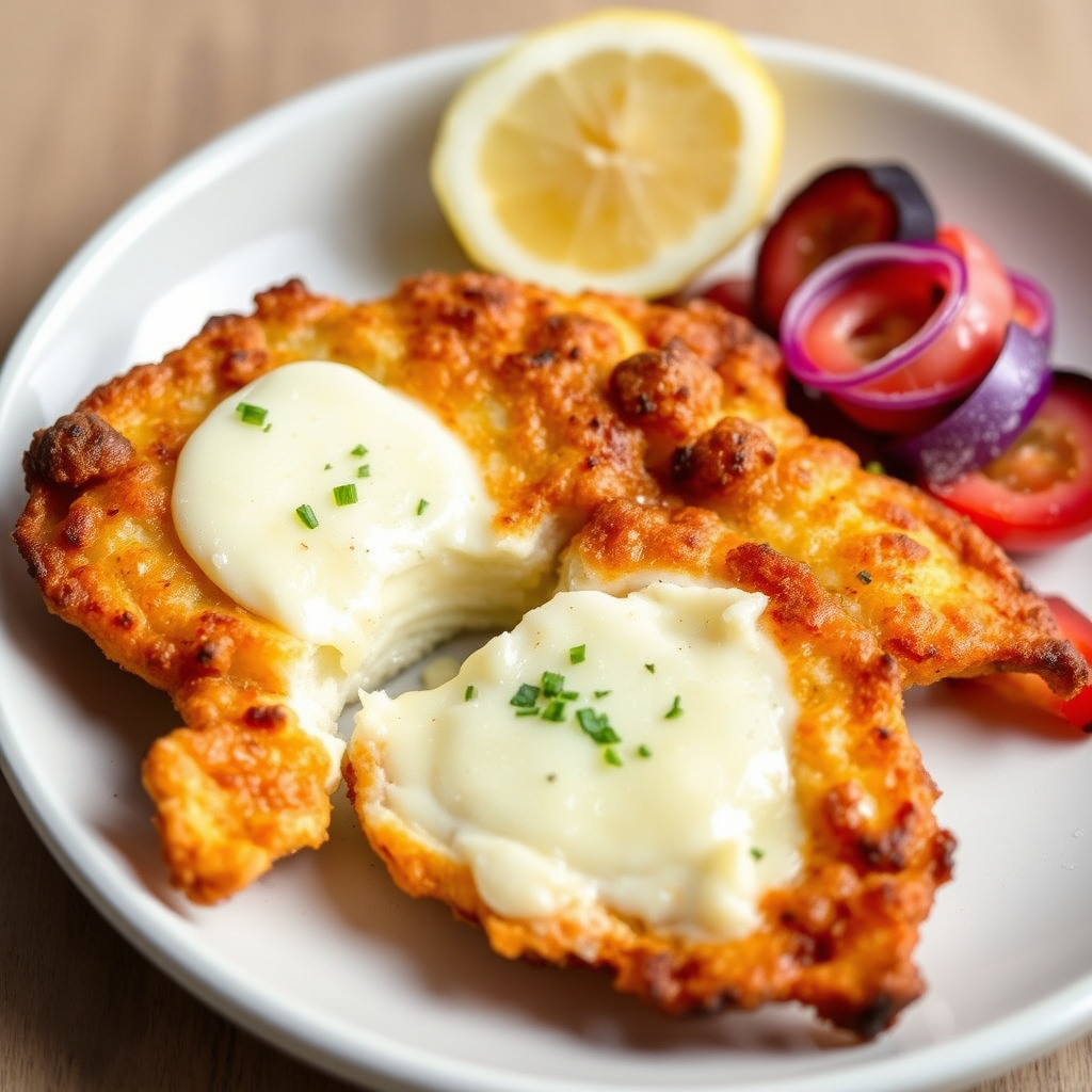 - 2I en stor, non-stick stekepanne, varm opp oljen på høy varme, tilsett osteskivene og stek dem til de er gyldne på alle sider, omtrent 1 ½ minutt på hver side. Hold dem varme i ovnen mens du gjør ferdig neste porsjon. Overfør osten til et serveringsfat, krydre med pepper, dryss over persille, og avslutt med en skvis sitron.