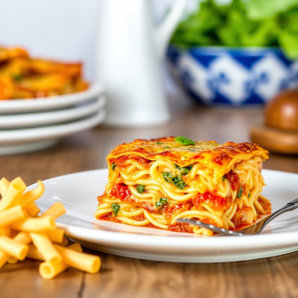 oppskrift på lasagna noodle kugel – en smakfull rett som kombinerer pasta og kremet saus. perfekt for familie og venner. enkel å lage!