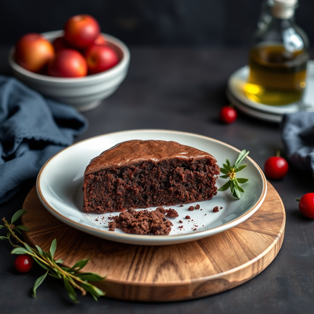 oppskrift på en deilig sjokolade-olivenoljekake, perfekt som dessert eller til kaffebesøk. enkel å lage og smakfull.