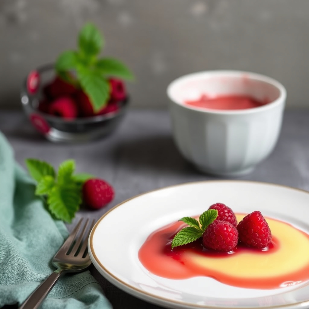 Lær hvordan du lager en silkemyk vaniljekrem servert med frisk bringebærmos. Perfekt som dessert for enhver anledning.