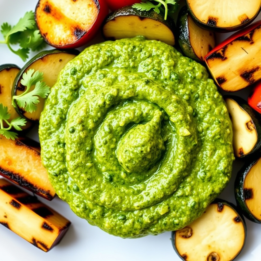 Oppdag hvordan du lager en smakfull tre-hersk pesto servert med grillede grønnsaker. Perfekt for sommermåltider og sunn kosthold.