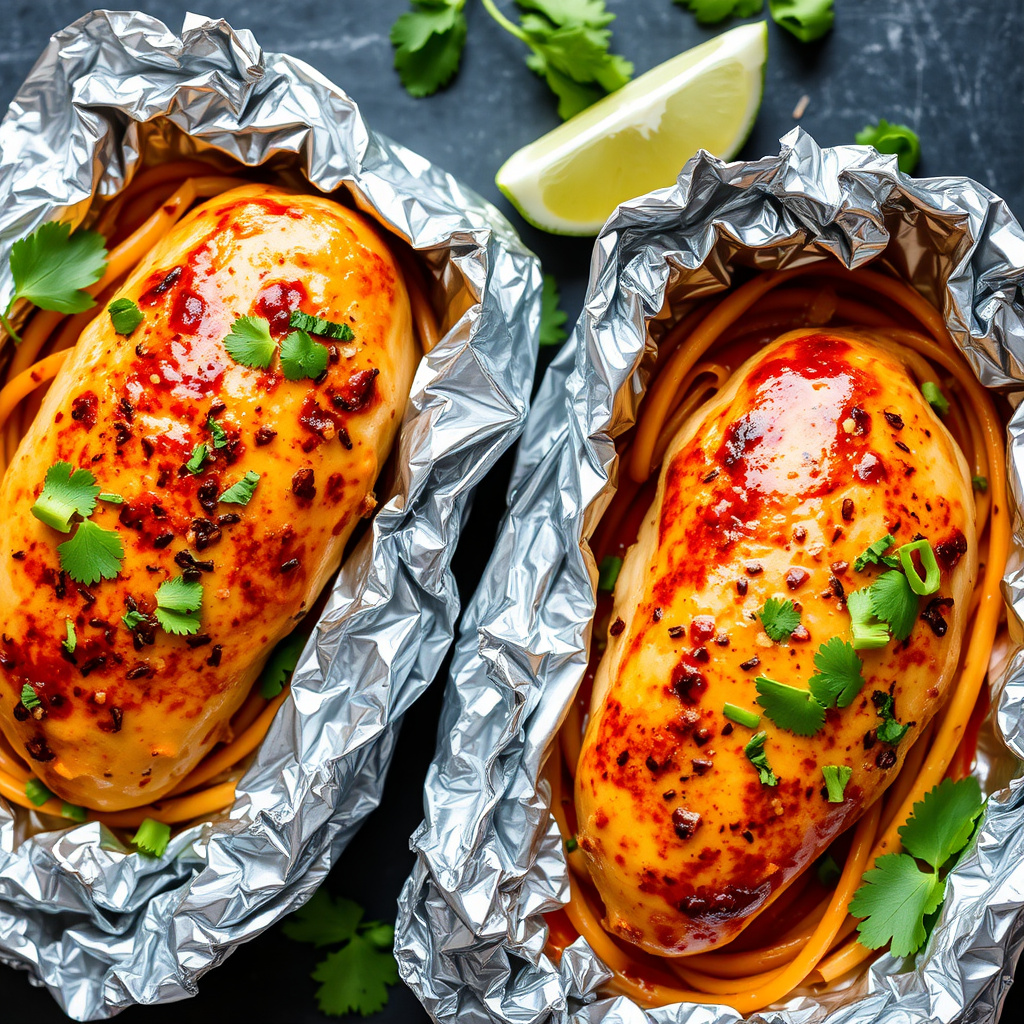 Lær hvordan du lager smakfull thai-stil kyllingbryst i folie. Enkel oppskrift med krydder og friske smaker, perfekt for en rask og sunn middag.