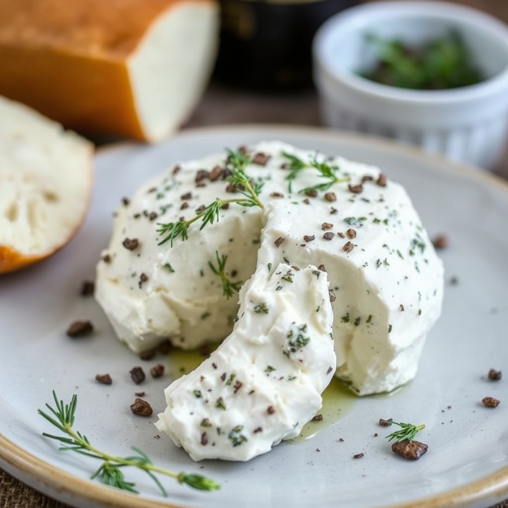 oppskrift på herbed geitost med friske urter. perfekt som forrett eller pålegg, enkel å lage og full av smak.