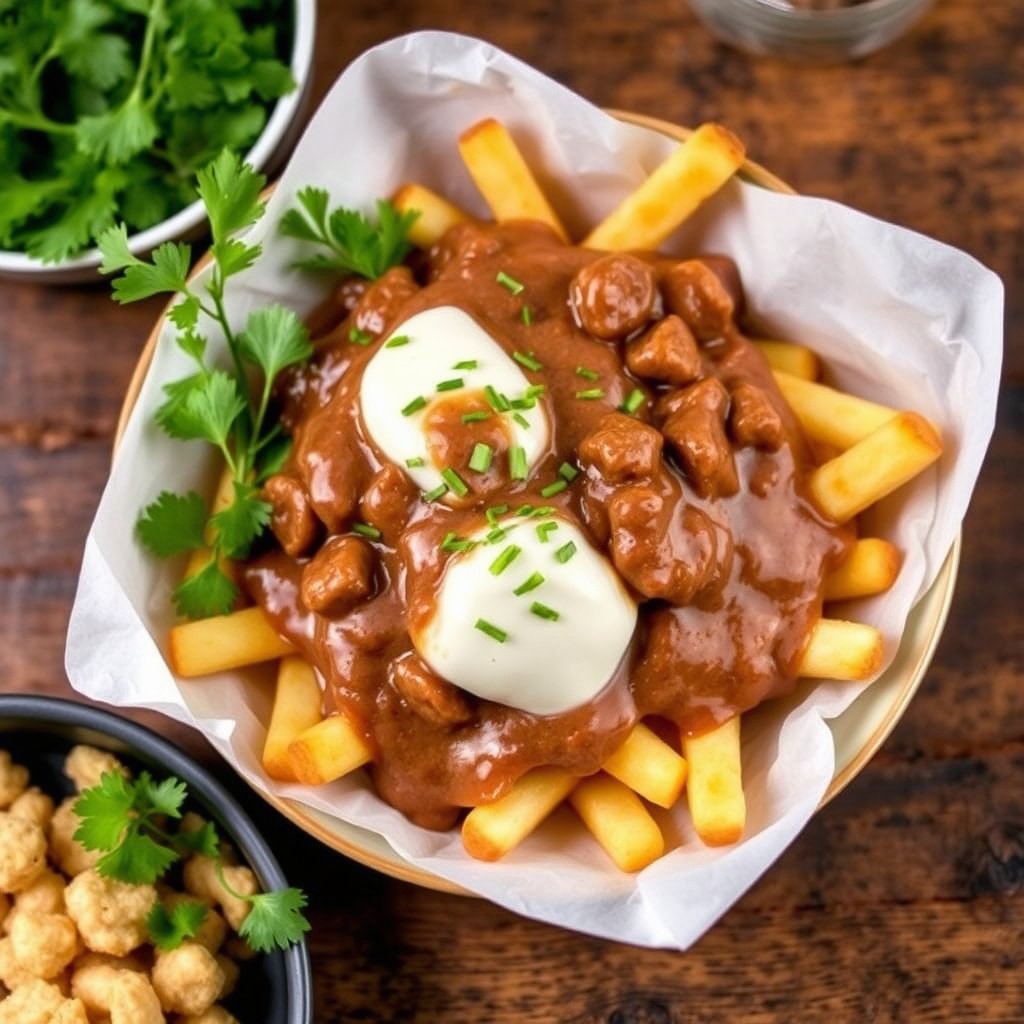 Lær hvordan du lager deilig poutine med mørk pølsesaus. En smakfull rett som passer perfekt til helgen eller som en komfortmat.