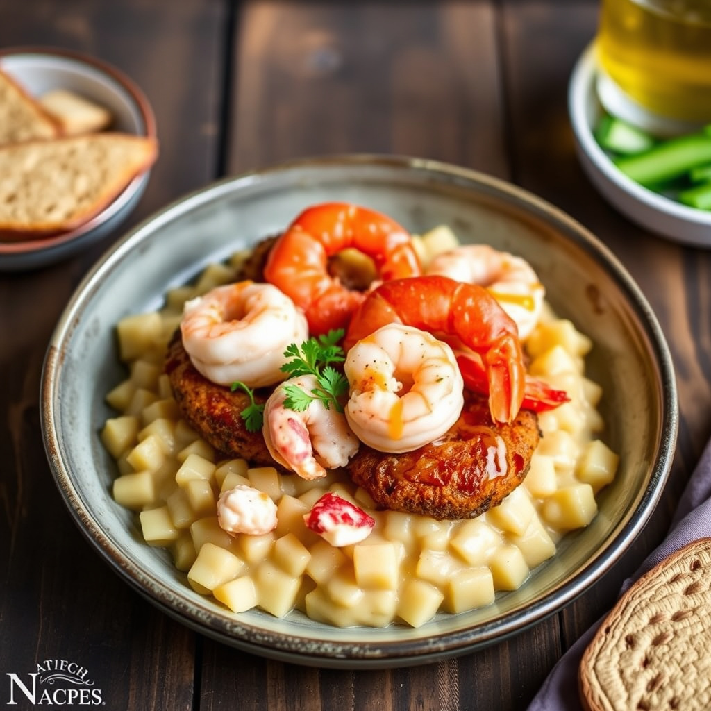 oppskrift på reker og hummer pølser med klassisk mashed potet. en smakfull og enkel rett perfekt for sjømatelskere.