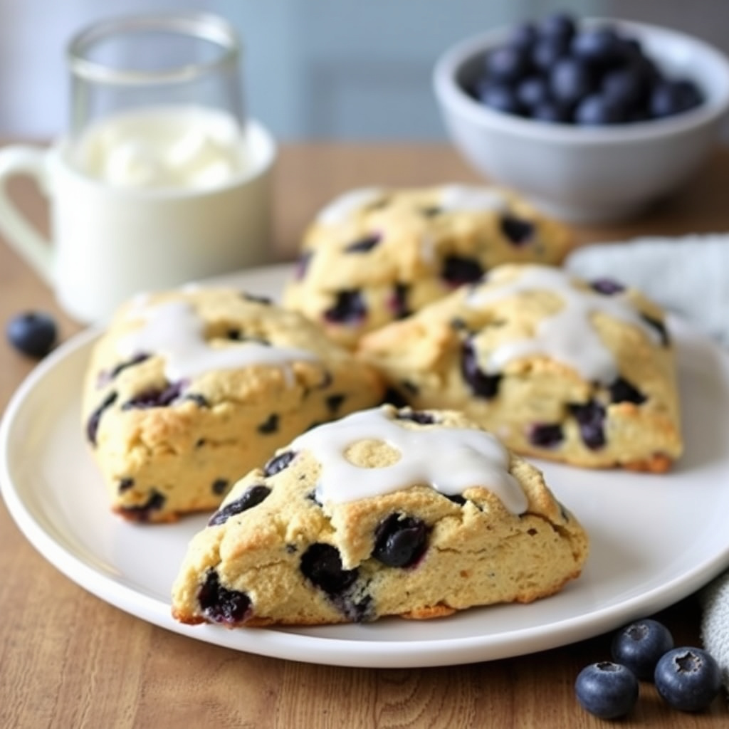 oppskrift på deilige ville blåbær scones av ruth thurston. perfekt til frokost eller brunch, med friske blåbær og sprø skorpe.