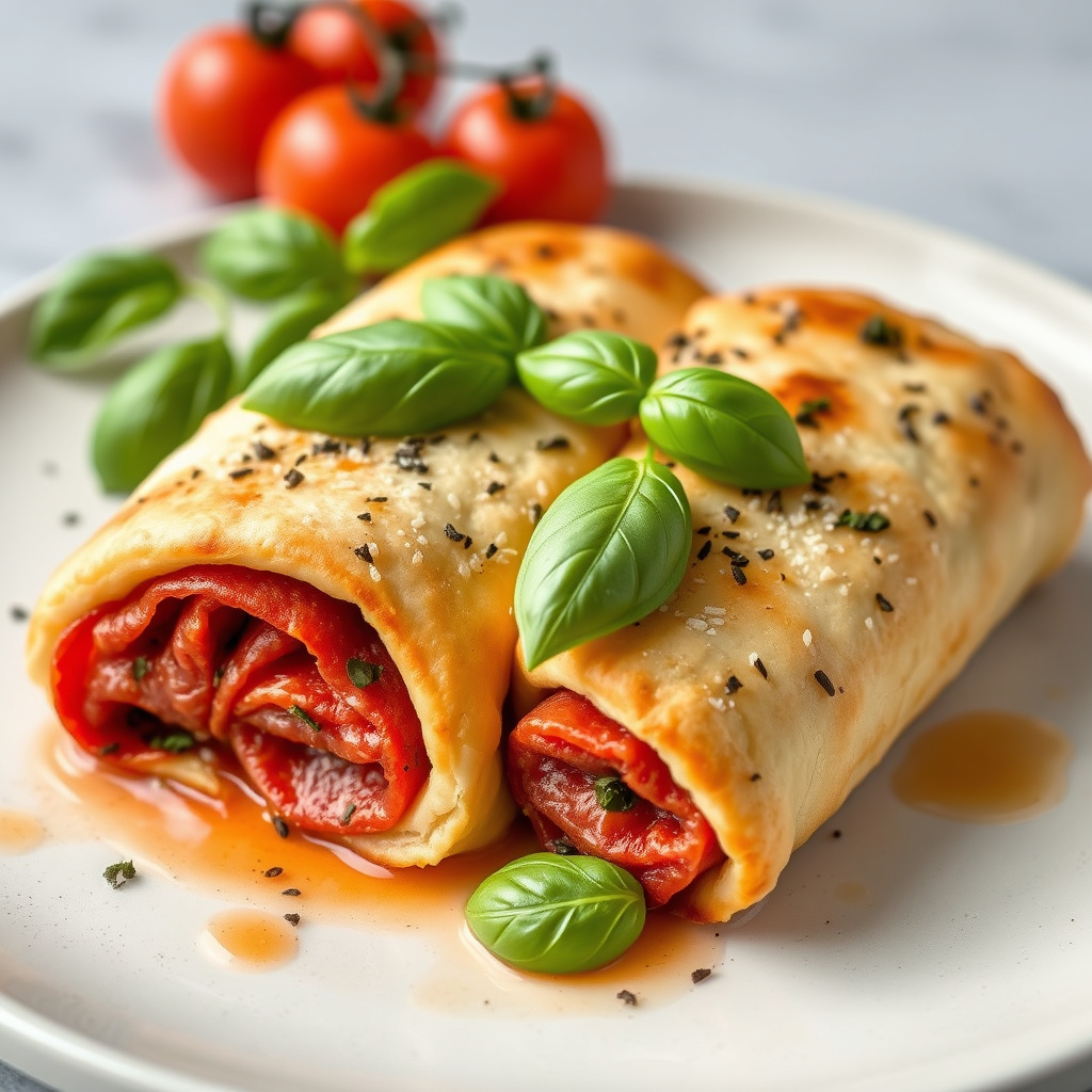 Lær hvordan du lager deilige calzone ruller med salami, frisk tomat og basilikum. Perfekt for en smakfull forrett eller lunsj.