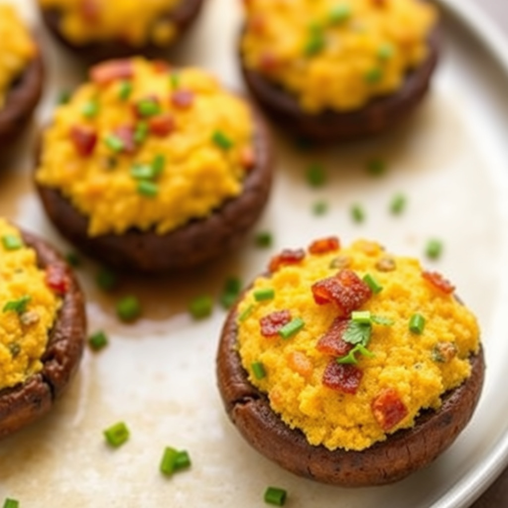 oppskrift på bacon cornbread fylt sopp, en smakfull forrett med sprø bacon og mykt maisbrød, perfekt for enhver anledning