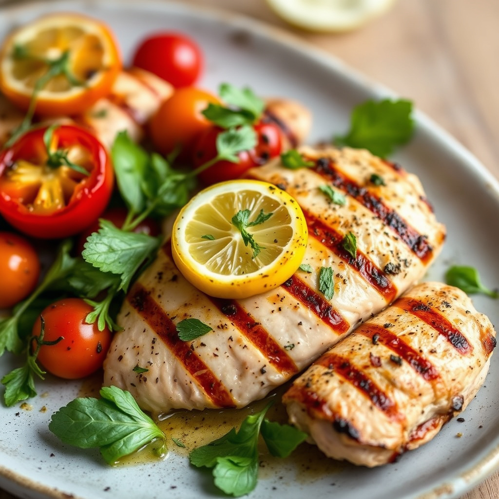 Lær hvordan du lager saftig grillet kylling med smakfull brent sitron og ferske arve-tomater. Perfekt for sommermåltidet!