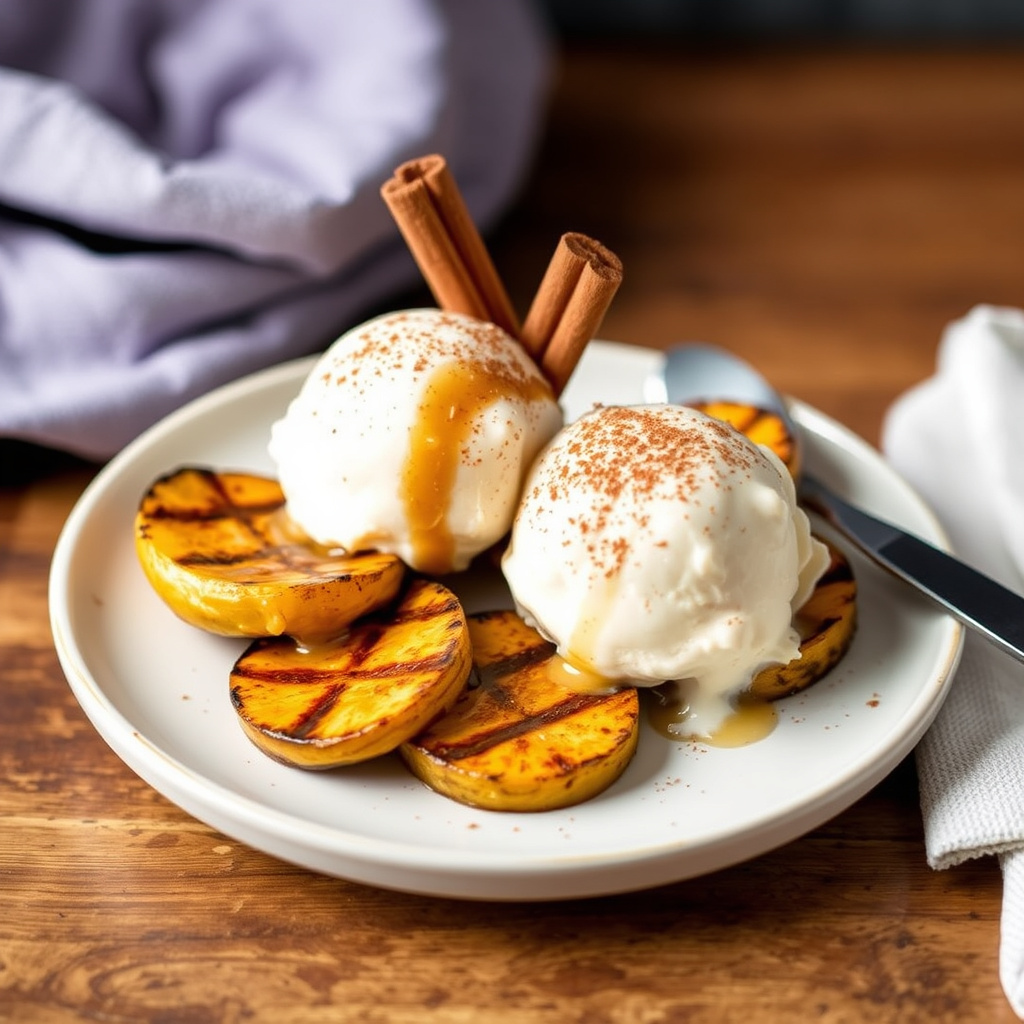 oppskrift på grillede plantain med kremaktig kanelis – en deilig dessert som kombinerer sødme og krydder for en unik smaksopplevelse