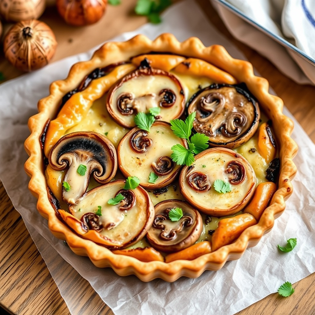 oppskrift på en deilig tre sopp tart, perfekt som forrett eller lett måltid. enkel å lage, smakfull og egnet for soppsesongen.