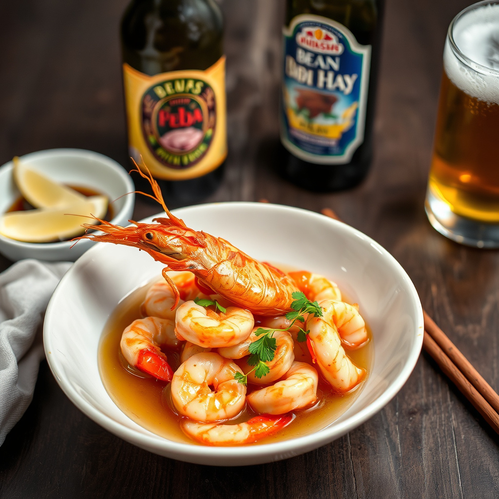 oppskrift på mantis prawns dampet i øl, en smakfull forrett med asiatisk preg. enkel å lage og perfekt for spesielle anledninger.