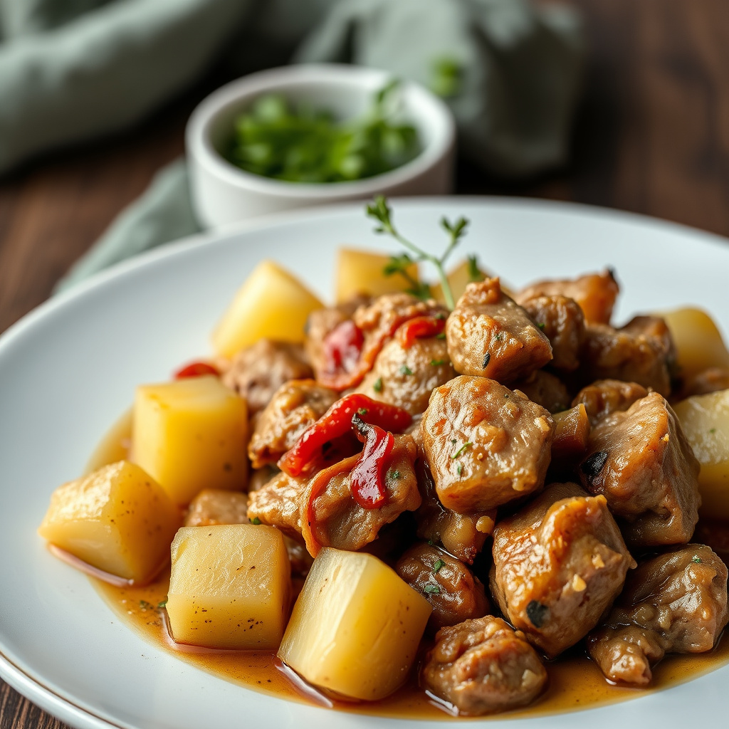 oppskrift på ungarsk svin og poteter – en smakfull og mettende rett med robuste smaker, perfekt for hverdagsmiddagen.