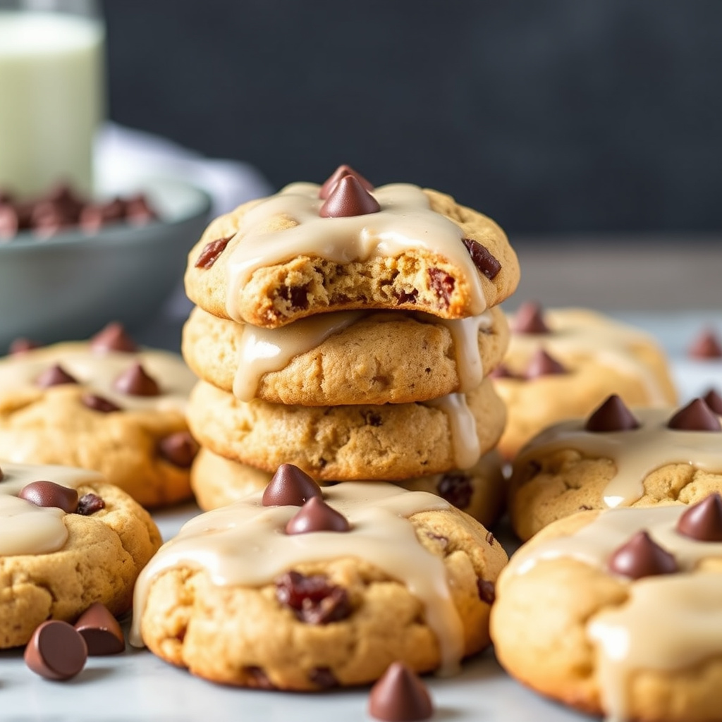oppskrift på deilige kjeks med melk sjokolade, sprø bacon og lønnesirupglasur – perfekt for en søt og salt dessert eller frokostbehag
