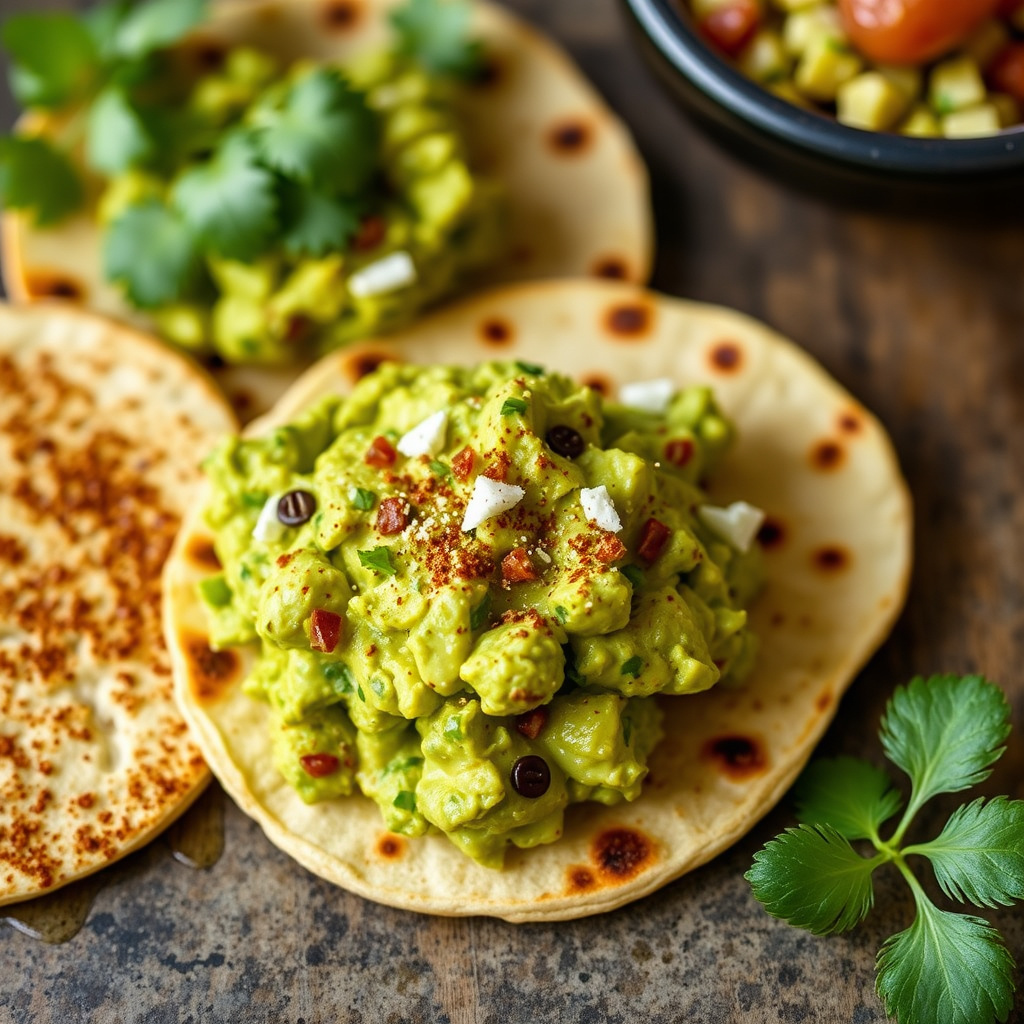 Guacamole med spiced tortillas med spisskummen
