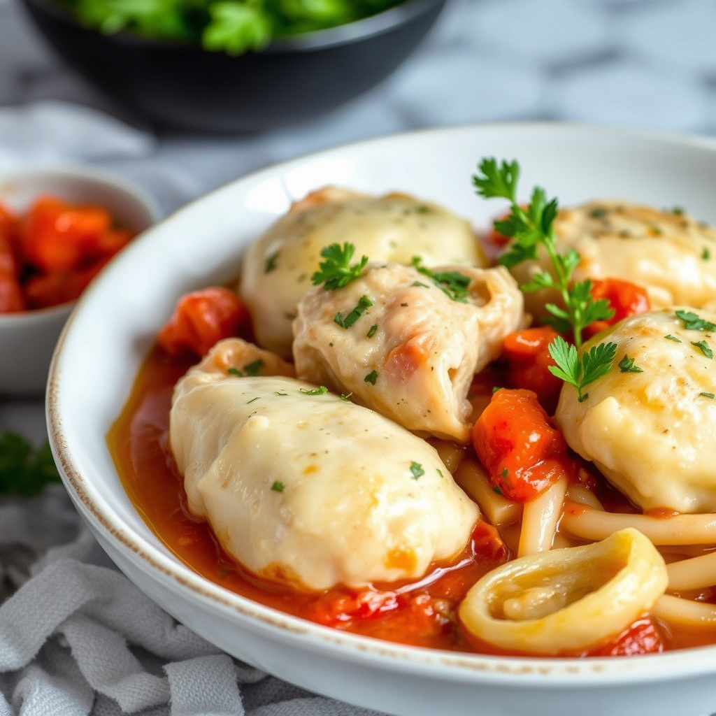Lær hvordan du lager en deilig italiensk inspirert kylling med dumplings. En enkel rett perfekt for hverdagsmiddagen eller helgen. Oppskriften er rask og smakfull.